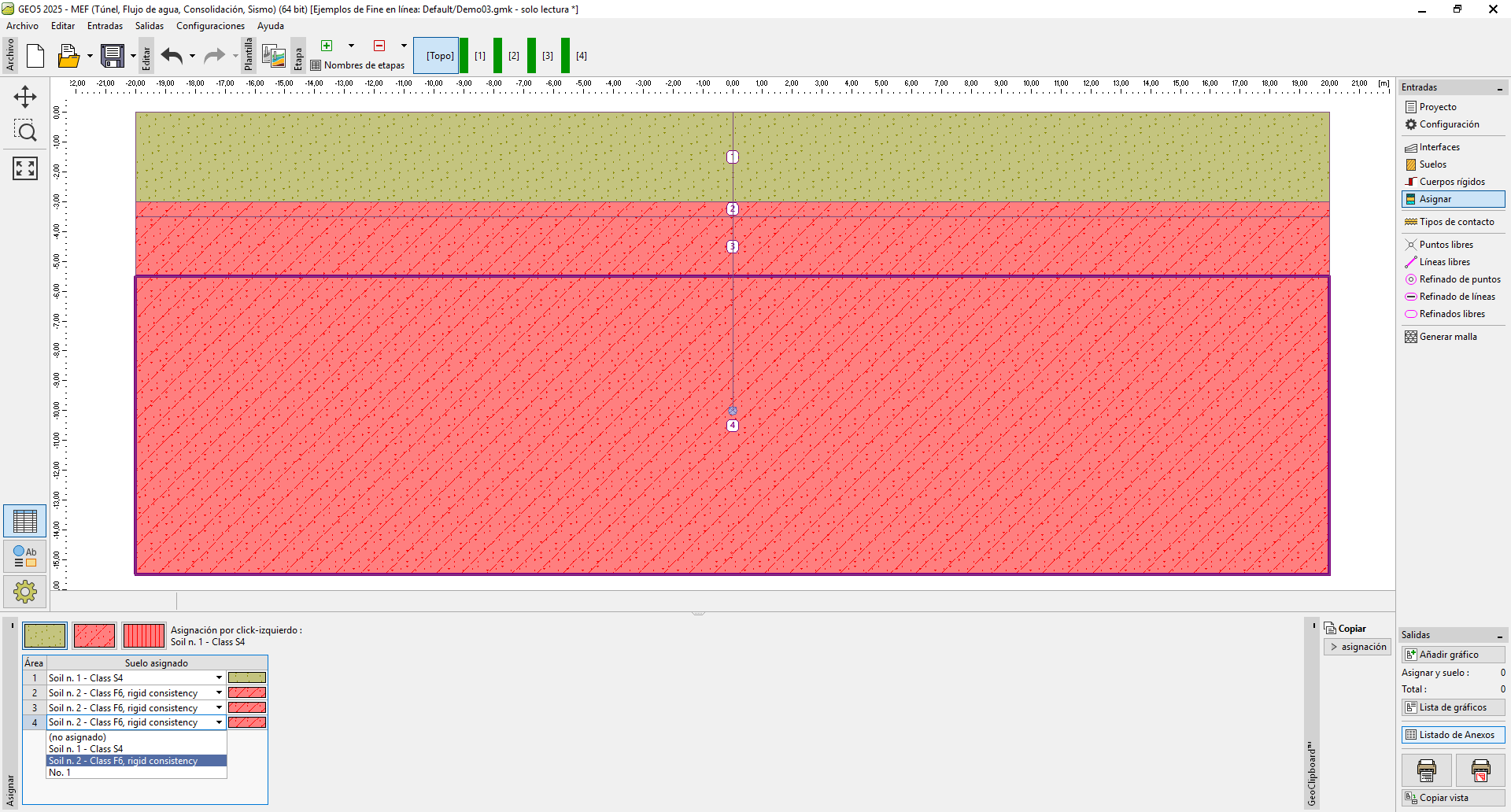 A diferencia de otros programas, el suelo, que se vuelve activo en las etapas de cálculo, se asigna a las regiones y no a las interfaces. Las regiones se crean automáticamente cuando se crea el modelo de cálculo.