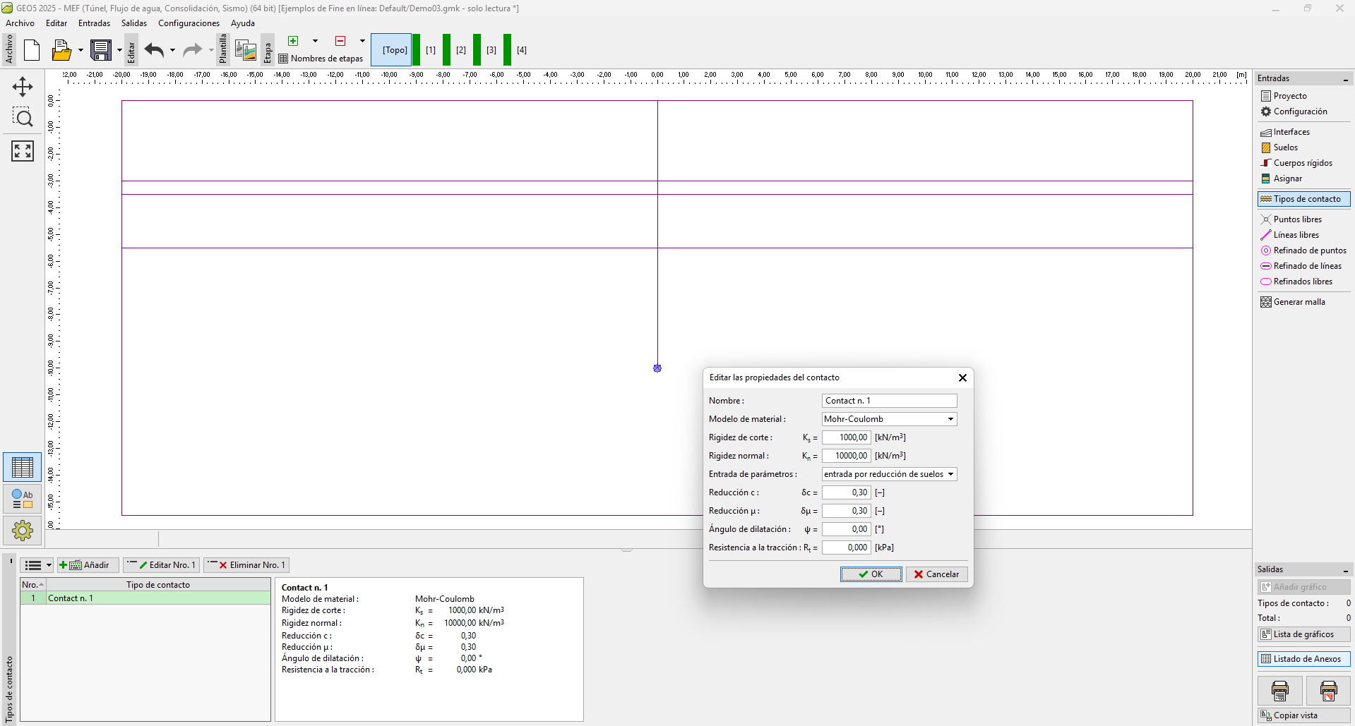Los contactos pueden ser definidos además en forma independiente a lo largo de interfaces de suelos individuales.